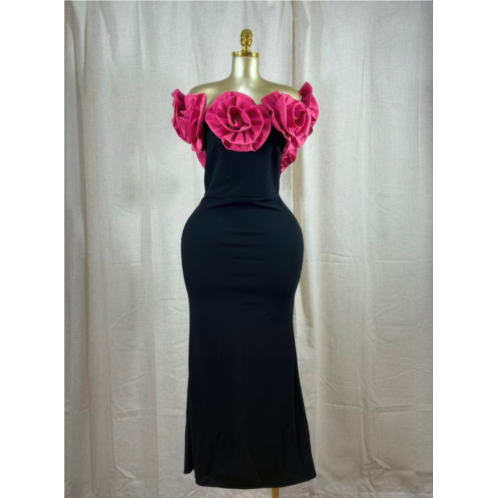 Turn every entrance into a show-stopping moment with the Midnight Magnolia Rosette Gown. Crafted from a smooth, stretch blend of polyester and spandex, this elegant off-shoulder gown hugs the body in all the right places. Dramatic fuchsia rosettes crown the neckline, adding a bold, couture-inspired finish that exudes confidence and artistry. Designed for high-impact occasions, this gown is perfect for destination weddings, gala evenings, and elevated birthday celebrations. Sophisticated, striking, and unforgettable.