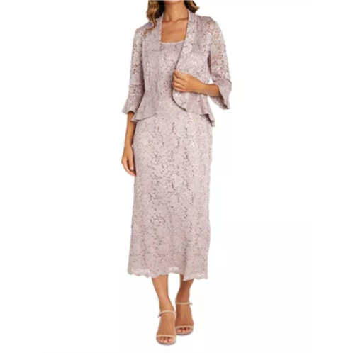 The perfect length dress does exist.Elevate your wedding attire with the Sequin Lace Two-piece Jacket Dress by R&M Richards, featuring short sleeves in a stunning blush hue. This women's bodycon midi dress is perfect for special occasions, boasting a textured pattern and scoop neckline. The dress is lined for comfort and finished with a practical back zip closure for ease of wear. Ideal for spring weddings, this fashionable choice offers a maximalist touch that is sure to make a statement.