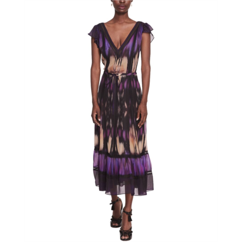 - Abstract Silk-Blend Midi Dress In Purple Multicolor