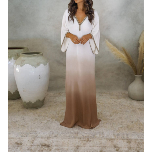 [US] Kadimah samira ombre beaded kaftan in ombre mocha