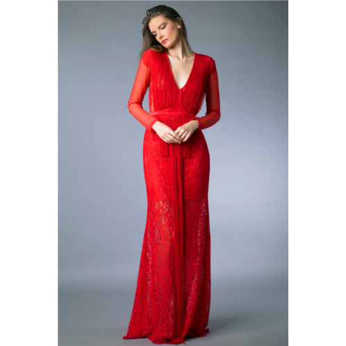 Fringed v neck evening gown