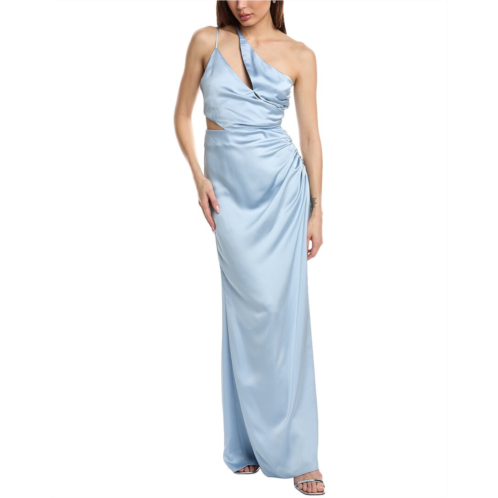 Elevate your evening look with the stunning Ramy Brook Kaydence Gown in Crystal Blue. This one-shoulder gown features intricate cutout detailing, ruched side, and a split hem for a modern and sophisticated touch. The inner gripping ensures a secure fit, while the left side seam zipper with hook-and-eye closure makes it easy to slip on. Crafted from high-quality materials, this gown is made of 100% polyester with a lining of 96% polyester and 4% spandex. The luxurious silk fabrics, lively colors, and sophisticated silhouettes are synonymous with the Ramy Brook brand, known for creating timeless and elegant pieces for the modern woman. Whether you're attending a gala, wedding, or special event, the Kaydence Gown is sure to turn heads and make a statement. Pair it with strappy heels and statement jewelry for a complete look that exudes confidence and style. Dry clean only. Imported.