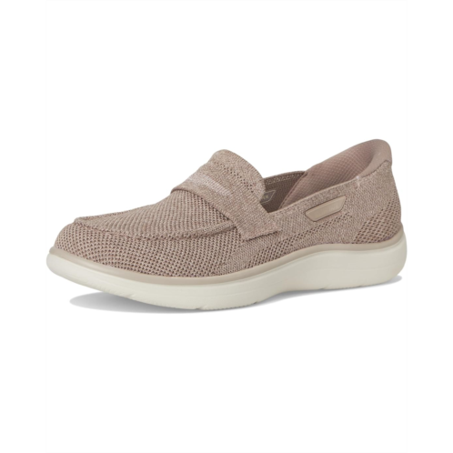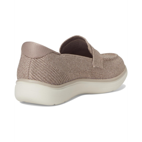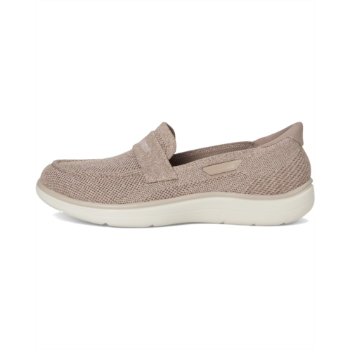 - Experience the SKECHERS Performance On-the-GO Hands Free Slip-ins Radiant - Bonnie. Designed for effortless wear, this chic penny loafer silhouette features a soft polyester textile upper and a vibrant printed lining for a stylish twist on everyday comfort. The revolutionary Hands Free Slip-ins design includes Skechers' exclusive Heel Pillow, keeping your foot secure with zero fuss. Enjoy all-day ease with the responsive, high-rebound ULTRA GO cushioning and an Air-Cooled Goga Mat insole that delivers cloud-like comfort. The lightweight EVA outsole offers flexibility and reliable traction for every step.