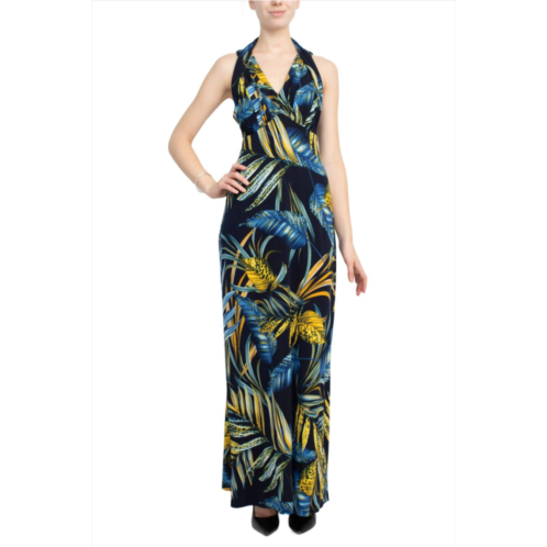 Who doesn't love a good maxi dress? This one you'll be reaching for season after season.Elevate your wardrobe with the Navy V-neck Crossed Shoulder Empire Waist Jersey Maxi Dress by Connected Apparel. This sleeveless maxi dress, measuring 54 inches in length, beautifully combines elegance and comfort. Crafted from a soft and stretchy fabric composition of 95% Polyester and 5% Spandex, it features a stylish V-neckline with crossed shoulder straps and an empire waist silhouette, accentuating your figure. The graphic multi-print design adds a lively touch, while the dress is practical for any occasion with its easy pull-on closure and machine washable feature.
