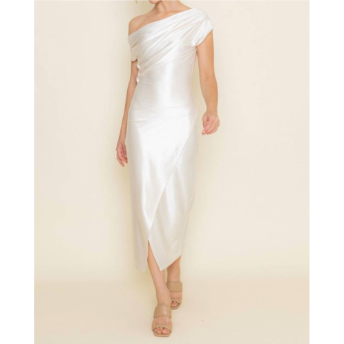 [US] Fore Collection joan pearl draped asymmetrical midi dress in white