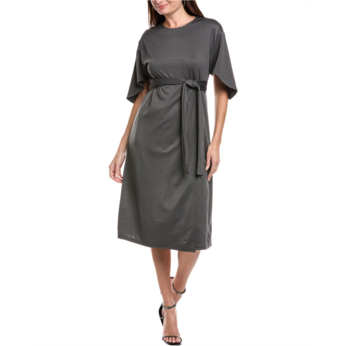 Introducing the IPPONELLI Midi Dress, a must-have addition to your wardrobe. This elegant grey dress features tulip sleeves, a belted waist, and a layered skirt front for a stylish and flattering look. Made from 100% polyester, this dress is easy to care for with simple hand washing. The slip-on styling makes it effortless to wear, and the dress measures approximately 45 inches from shoulder to hem. Whether you're dressing up for a special occasion or simply want to elevate your everyday style, the IPPONELLI Midi Dress is the perfect choice. Available now in the women's clothing dresses category. Model is 5'10.5 and is wearing a size small. Measurements may vary slightly by size. Imported.