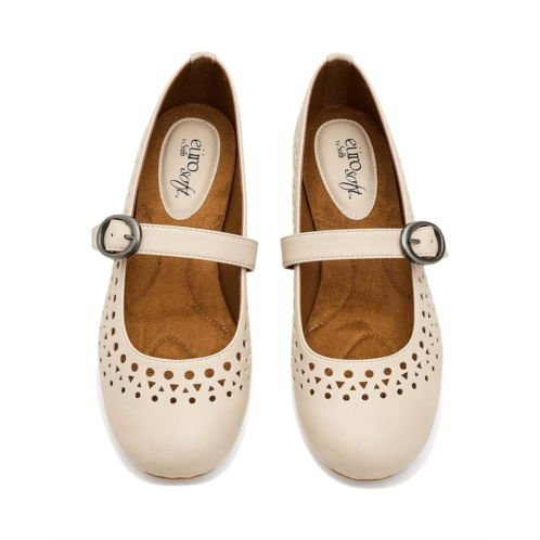 - The EuroSoft Tiara brings a touch of grace to your wardrobe, proving that timeless design and effortless ease belong together. Designed as a versatile ballet flat with a modern Mary Jane twist, this beauty features a soft faux leather upper detailed with delicate laser cut and perforated accents for breathable sophistication. The round toe silhouette keeps the look polished yet playful, perfect for workdays, brunch dates, or evenings out. Inside, the plush faux suede lining wraps your feet in softness, while the cushioned Ethylene Vinyl Acetate insole delivers lightweight comfort you'll love from morning to night. The adjustable buckle strap ensures a secure, customized fit with a touch of vintage-inspired flair. Finished with a durable rubber outsole and flexible construction, the Tiara moves effortlessly with every step.