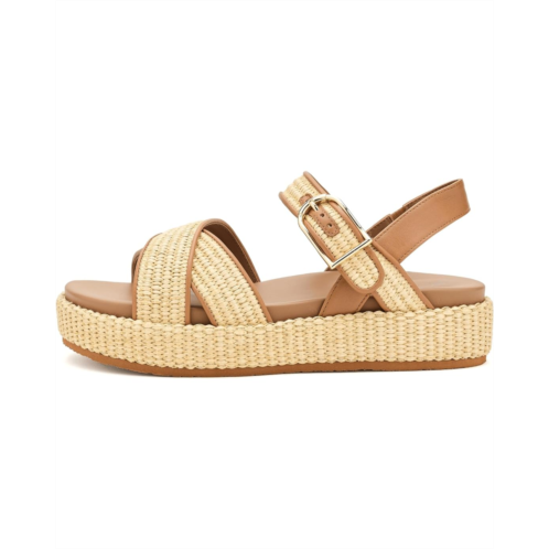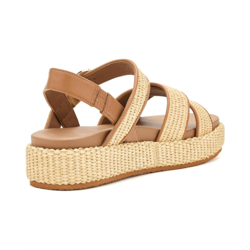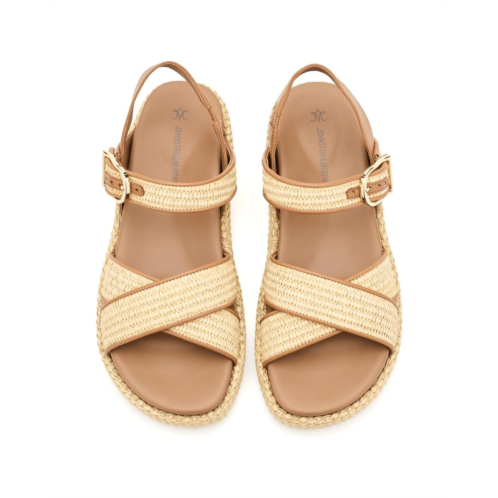- The Johnston & Murphy Carli Cross-Band Sandals blend natural texture with elevated comfort. Crafted with a raffia and nappa leather upper, this style offers a refined yet relaxed warm-weather look. The lightweight TRUFOAM molded footbed with arch support delivers ultra-cushioning for all-day comfort. A buckle closure ensures a secure, adjustable fit, while the raffia-wrapped platform adds subtle height with stable support.