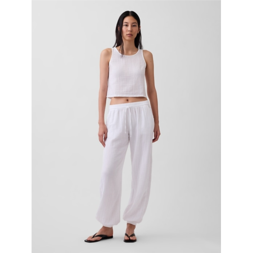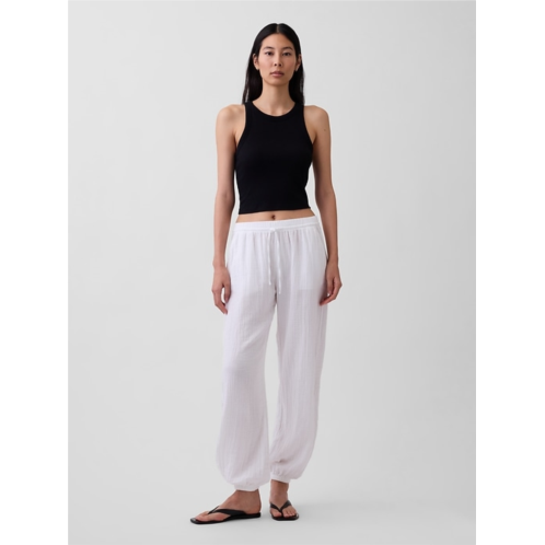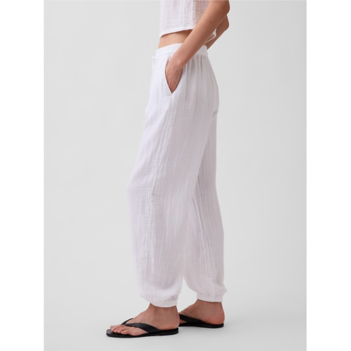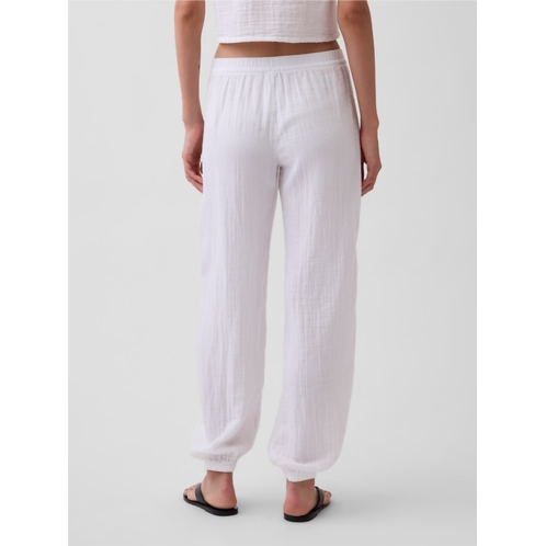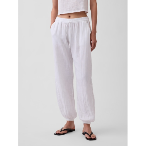 - Soft cotton gauze easy-on barrel joggers in a relaxed fit.