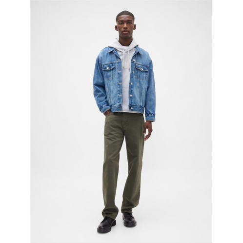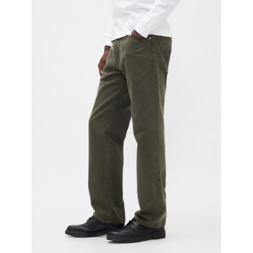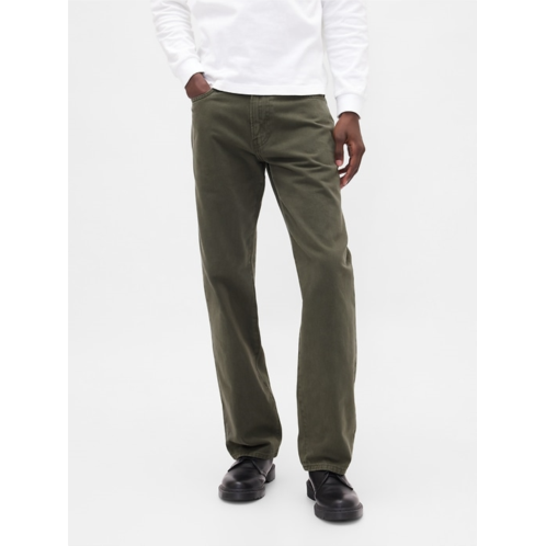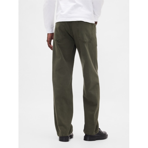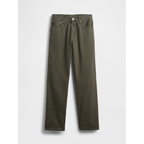 -Look:A five-pocket relaxed straight jean in an olive wash.