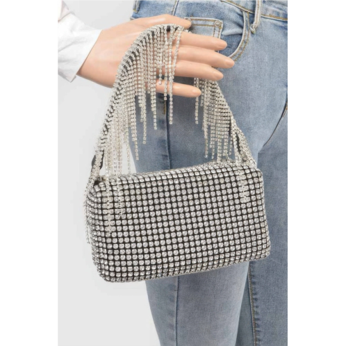 [US] FASHNZFAB oversized rhinestone fringe strap clutch