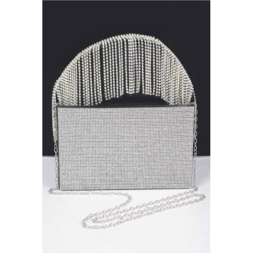 [US] FASHNZFAB rhinestone box clutch w/rhinestone fringe handle