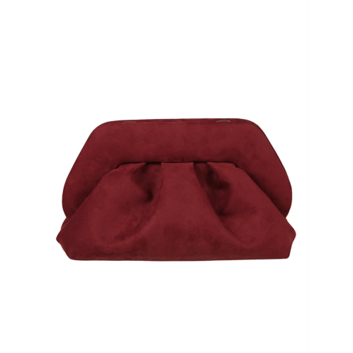 [US] THEMOIRE ruched burgundy suede clutch bag with structured frame