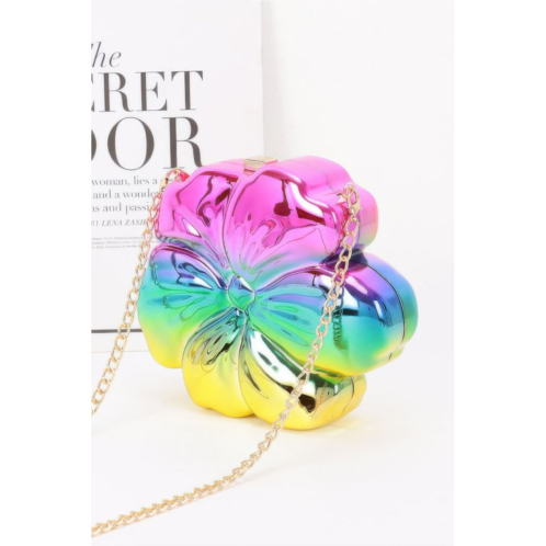 Make a bold statement with the Metallic Acrylic Clutch, a standout accessory that combines playful charm with polished elegance. Designed in a unique flower shape, it features a high-shine metallic acrylic finish that catches both light and attention. The compact silhouette is complemented by a delicate chain strap, making it functional as well as stylish. Perfect for themed parties, special occasions, or any look that calls for a vibrant, eye-catching accessory.