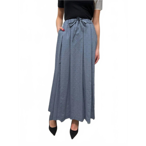 Flowy, comortable and stylish. This maxi skirt is a fan favorite.Meet the Mosaic Cotton Maxi Skirt in a refreshing blue, ideal for summer occasions like church or Mother's Day celebrations. This women’s skirt boasts a textured pattern and a comfortable elastic waistband, suitable for day-long wear. It features practical pockets and a pull-on closure for easy dressing. For best maintenance, hand wash and line dry this fashionable addition to your wardrobe.