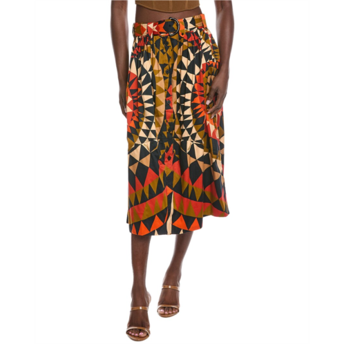 [US] FARM Rio heart deco black button down midi skirt