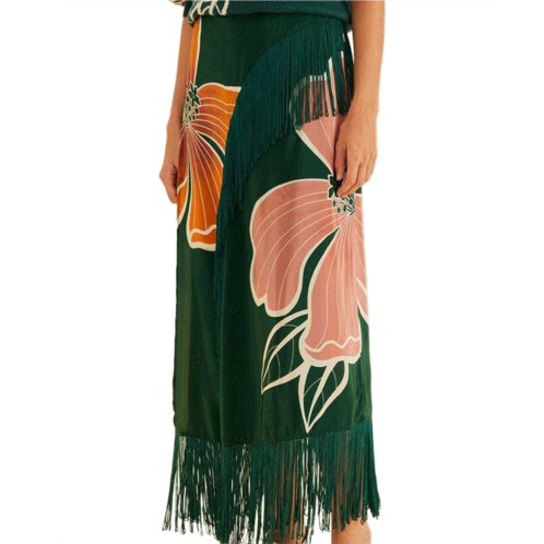 [US] FARM Rio honolulu flowers green fringe maxi skirt