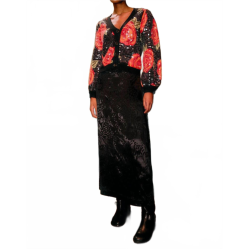 [US] FARM RIO womens midnight leopards maxi skirt in black