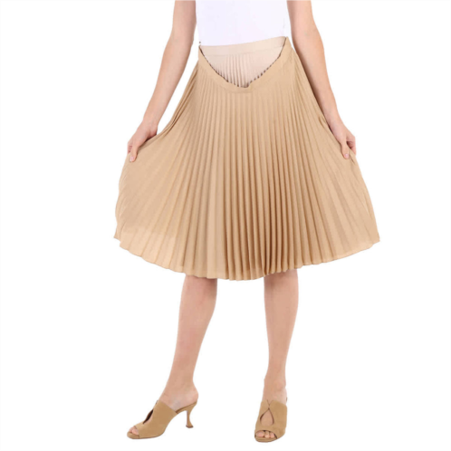 Burberry Ladies Bottoms. Fashion category - Skirts. SKU - 4560875. Color - Sandbank. Burberry Ladies Sandbank Layered Pleated Skirt. THis skirt features a double waist silhouette in contrasting neutral tones, a mid-length, a pleated design and a fitted waist. Material - Polyester 100% Specialist Cleaning. Made in Italy.