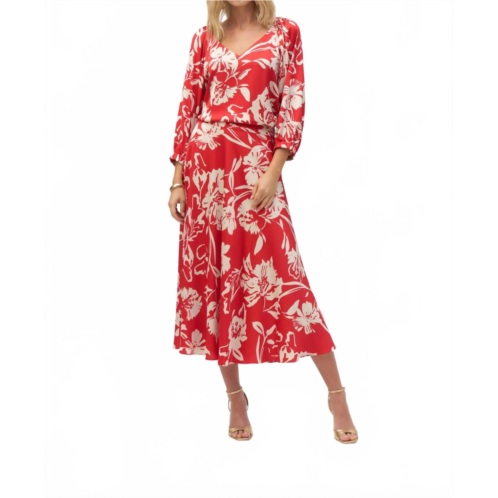 [US] Joseph Ribkoff floral print a-line midi skirt in red/cream