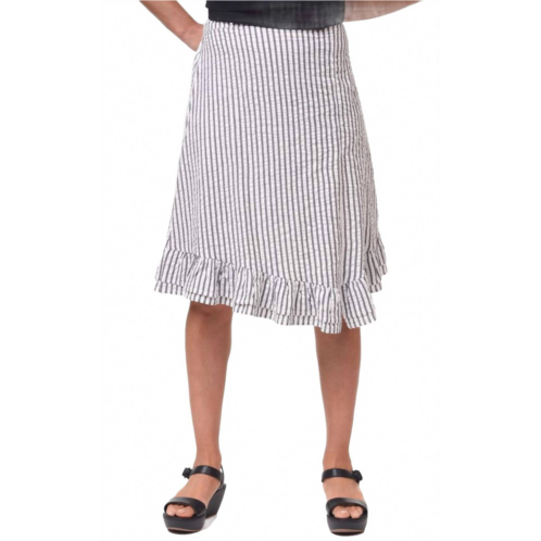 The midi length skirt is here to stay and we especially love this style.Discover the Belmont Skirt by Tulip Clothing, a summer essential in vibrant Murphy Seersucker Stripe, perfect for any boho-chic occasion. This midi skirt features a playful flounced ruffle hem and an elastic waistband, combining comfort with a flattering flat front. Crafted from 100% cotton for ultimate breathability, it features hidden side-seam pockets for practicality. Closure - Pull-on style. Care - Machine wash and line dry. Waist (Relaxed) - XS 28.5', S 30.5', M 32.5', L 34.5', XL 36.5', XXL 38.5'; Length - XS 27', S 27.5', M 28', L 28.5', XL 29', XXL 29.5'. Model is wearing size small.