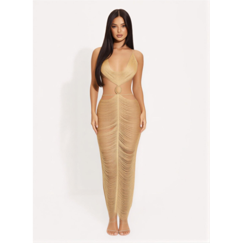 [US] TRUEDAMES metallic cut open back maxi dress