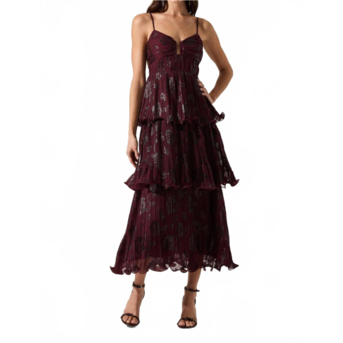 [US] ASTR lupin pleated tiered maxi dress in wine