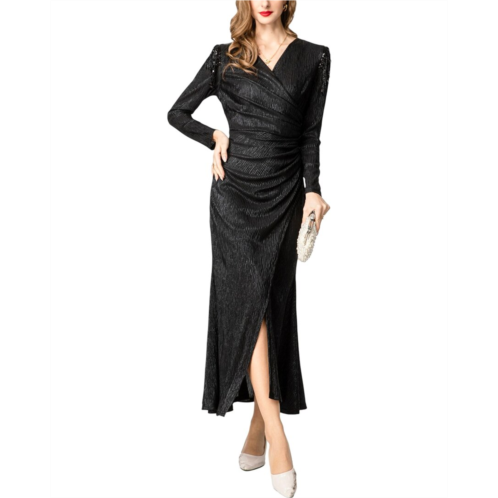 Style: gownClosure: wrapSleeve Length: 34 sleeve