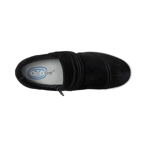 - The Orthofeet Eva is your go-to Mary Jane for effortless support and modern flair. Crafted with a soft suede upper and plush polyester lining, this lightweight walking shoe cushions every step with its ergonomic EVA insole. The flexible rubber outsole ensures stability, while the block heel adds a touch of chic sophistication without compromising comfort. Thanks to the convenient hook-and-loop closure, slipping into a perfect fit has never been easier. Designed for extra toe room and a naturally comfortable fit, Eva supports your feet from morning errands to evening strolls.