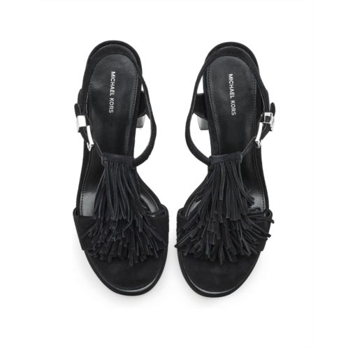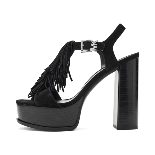 - The MICHAEL Michael Kors Indra Platform Sandals are fashion platform sandals with a fringe leather upper that will surely be a show stopper. These heeled sandals are made of a faux leather insole and a polyurethane lining. Their adjustable buckle closure offers a perfect fit. Styled with branded hardware, these slip-on heels make a stylish addition to your wardrobe.