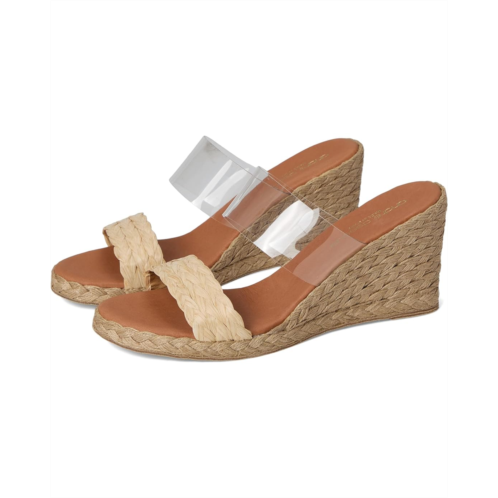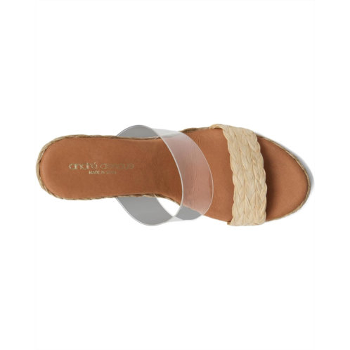 - Designed with a transparent strap and a woven raffia strap, the Andre Assous Anfisa Raffia sandals are perfect for styling up your looks and outfits. Their vinyl and raffia upper features a slip-on style for easy wear. These heeled sandals are made of a supportive leather footbed with extra cushioning and leather lining.