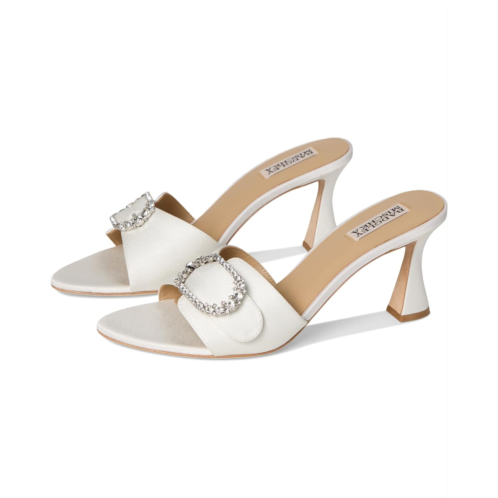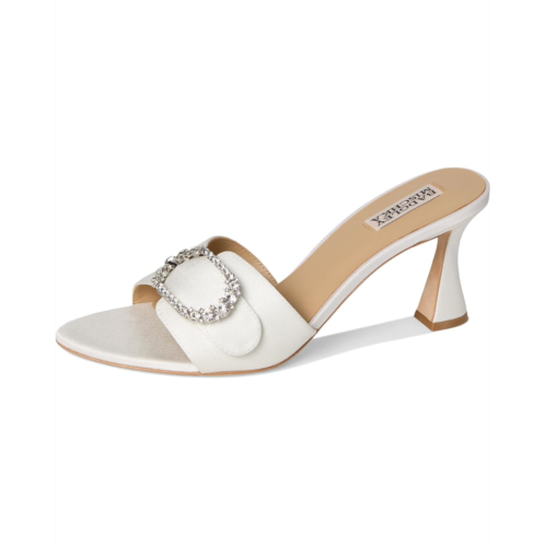 - The Badgley Mischka Odetta showcases a design that perfectly balances glamor and wearability. This slide sandal features an open almond toe that elongates the foot, while a mid-height block heel provides stability. Across the vamp, a sparkling embellished brooch detail adds a statement-making touch.