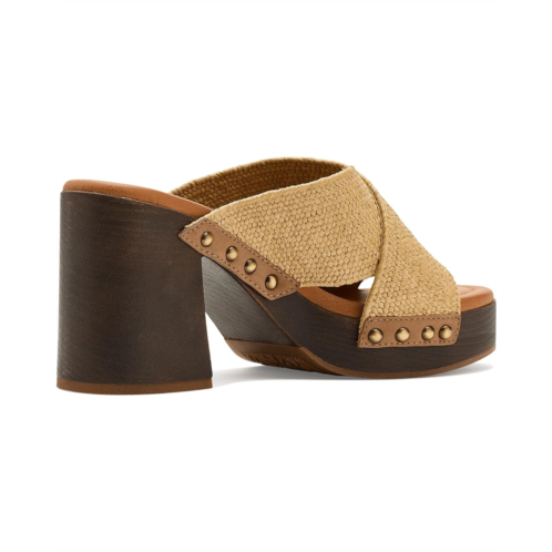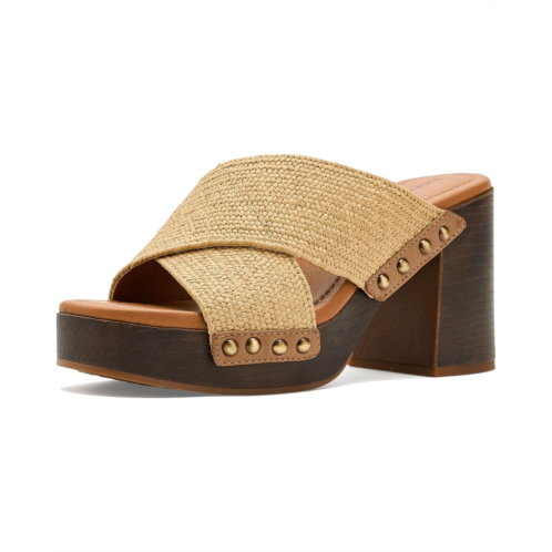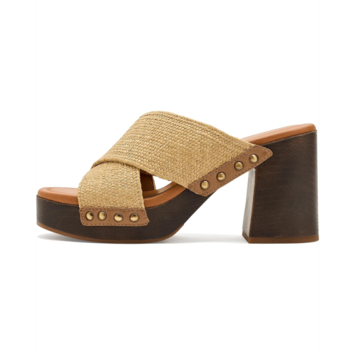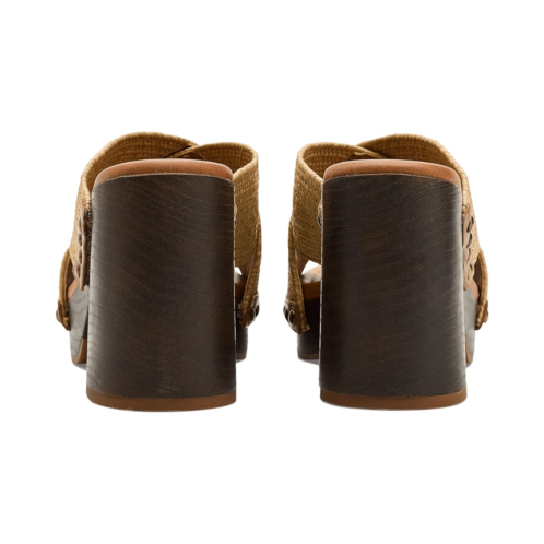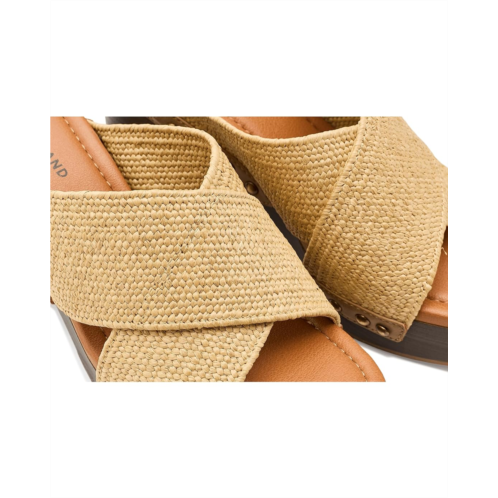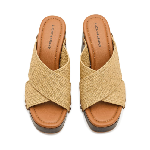 - The Lucky Brand Casyna Cross Strap Studded Heel Sandals are where fashion meets comfort! With a designer-inspired wood bottom, stretch straw woven straps, and a cushioned footbed, these shoes will keep your feet comfortable and secure.