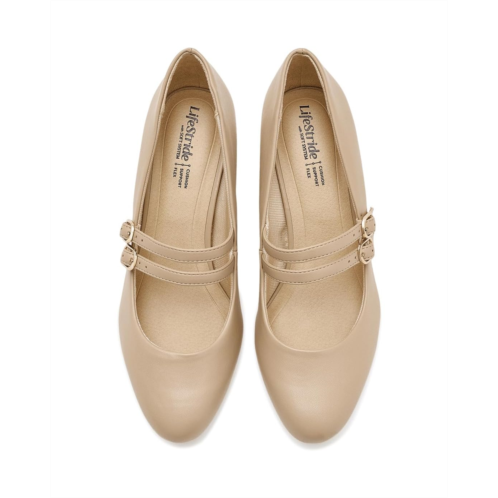 - The LifeStride True Mary Jane Shoes are crafted with a polyurethane upper and features a sleek almond toe and an easy slip-on fit. Dual Mary Jane straps with adjustable metallic buckles and stretch gore add both retro charm and modern flexibility, while the cupped heel enhances stability. Built with the Soft System comfort package, it delivers all-day arch support, flex, and cushioning, complemented by a traction sole for extra grip.