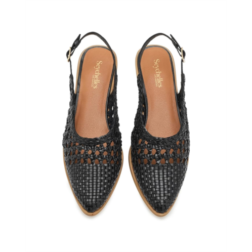 - The Seychelles Roxanne Sandals bring a fashionable twist to your everyday walking experience. The closed almond toe sandals come with a woven leather upper in a breathable, open weave pattern and a slingback strap with adjustable buckle closure. With the faux leather lining, padded faux leather insole, and stylish stacked leather heel, you'll be sure to beat the heat in style.