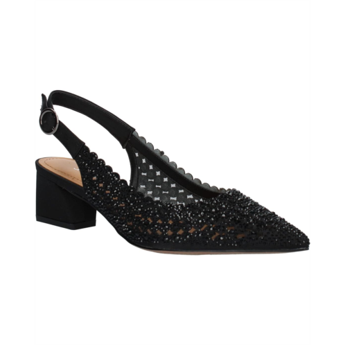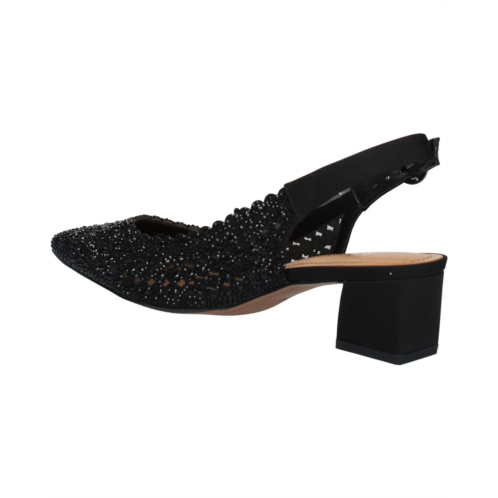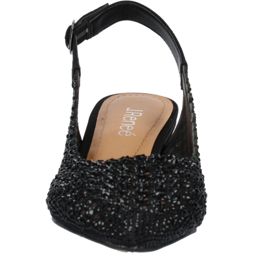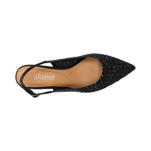 - Bring on a glamorous update to your style by wearing the J. Renee Pranil block heel. This chic shoe features a satin upper with rhinestone embellishments throughout. The chunky block heel and memory foam footbed make these extra comfortable.