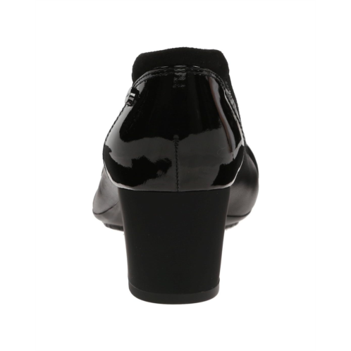 - Leather upper with patent cap toe and heel cup.
