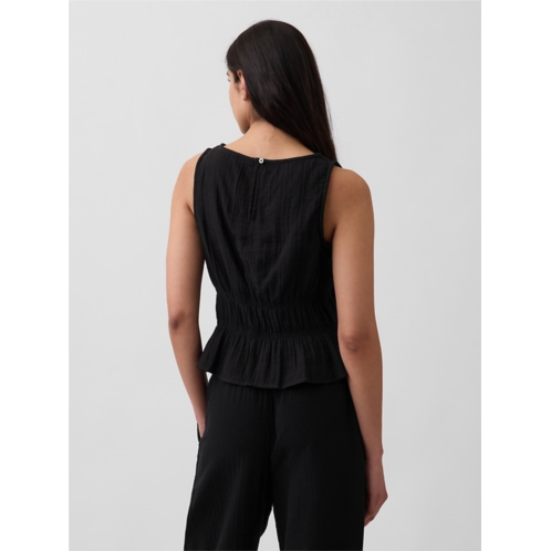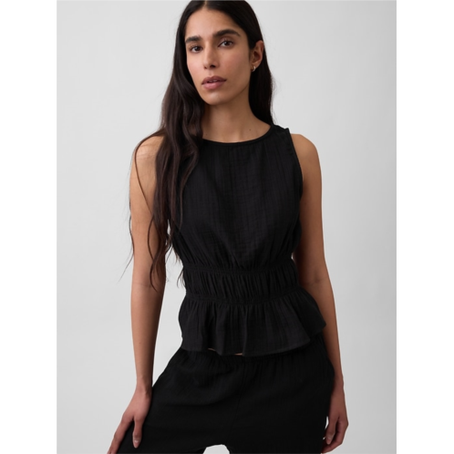 [US] Gap Cotton Gauze Smocked-Waist Peplum Top