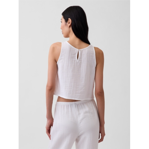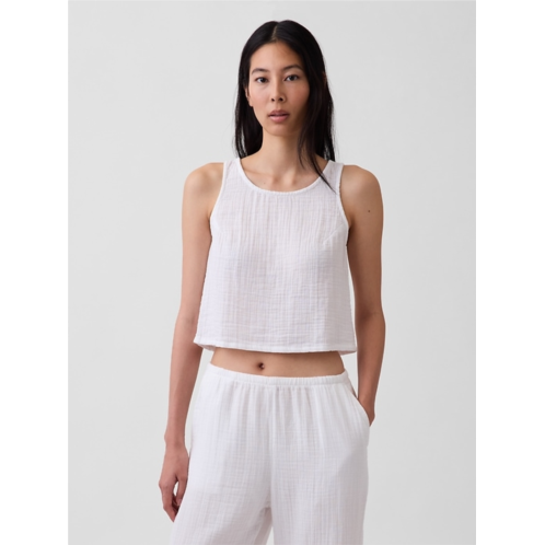 - Soft cotton gauze tank top in a cropped length.