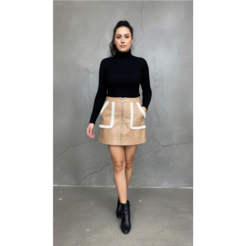 Bold and fashion-forward, the Faux Leather Skirt with Fur Accent is designed to make a confident statement. Made from a stretchy polyester-spandex blend, this skirt showcases a sleek faux leather finish accented with soft faux fur for added texture and edge. Exposed zipper-look pockets introduce a modern, street-chic element while maintaining functionality, making it an elevated choice for night outs, concerts, and standout everyday styling.