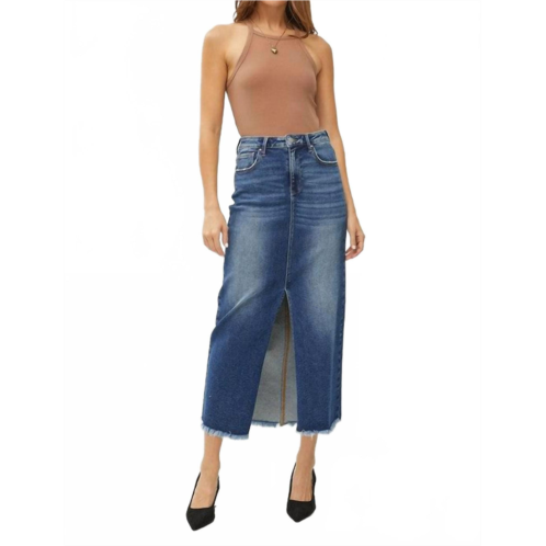 [US] RISEN super stretchy high rise long denim skirt in dark wash