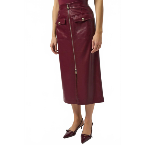 [US] Joseph Ribkoff faux leather zip front high waist midi skirt in merlot