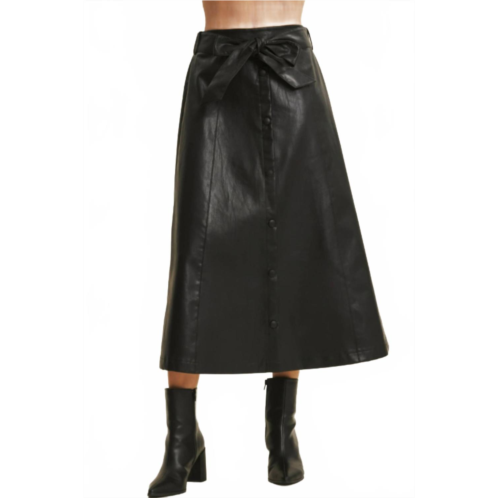Show off just the right amount of skin in this beautifuly designed midi length skirt.Introducing the Liv Midi Skirt by In February, a standout piece perfect for travel or New Year's Eve celebrations. This mid-length skirt is crafted in vegan-friendly faux leather for a chic, solid look. Designed with a flattering belted waist and a gently structured A-line silhouette, this skirt is a blend of comfort and sophistication. Closure - Pull on, ensuring ease of movement and effortless style.