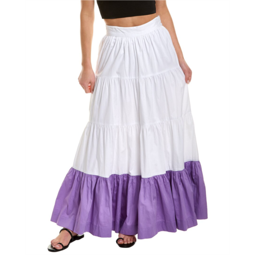 Introducing the AMUR Koral Tiered Maxi Skirt, a stunning addition to your wardrobe that exudes both style and sustainability. This white maxi skirt features a tiered design, dual side seam pockets, and a colorblocked hem for a chic and versatile look. Crafted from 100% organic cotton with a 100% cotton lining, this skirt is not only fashionable but environmentally friendly as well. The left side seam zipper with hook-and-eye closure ensures a perfect fit, while the approximately 42-inch length from waist to hem is flattering on all body types. Pair it with your favorite top for a effortlessly stylish outfit. Elevate your ethical fashion game with the AMUR Koral Tiered Maxi Skirt.