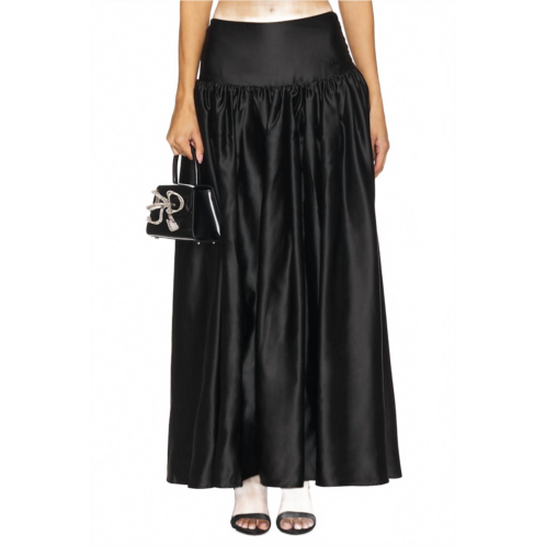 Who doesn't love a good maxi skirt?Discover the Nelly Maxi Skirt by For Love & Lemons, a chic addition to your spring wardrobe. Crafted from a shell of 100% polyester with a lining blend of 98% polyester and 2% spandex, this elegant maxi skirt is both stylish and comfortable. Made in China, it features a concealed side zipper closure for a seamless look. Effortlessly preppy, it’s prepared for dinner parties and is fully lined for a smooth fit, with care instructions recommending dry cleaning.