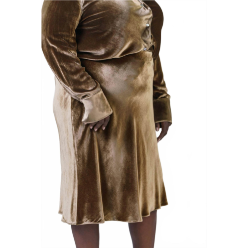 Dress this pencil skirt up with a blazer or down with your favorite tee. So versatile and timeless.Elevate your fall wardrobe with the Vince Velvet Short Slip Skirt in a stunning Gold Shadow hue, perfect for Thanksgiving or a dinner party. This solid pencil skirt is crafted from luxurious velvet and features a pull-on design with an interior elasticized waistband for a seamless fit. As part of Vince's Quiet Luxury trend for plus sizes, it offers timeless style and comfort. Embrace its effortless elegance and pair it with your favorite tops for a chic, sophisticated look.