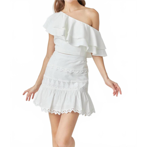 [US] Endless rose trim detail mini skirt in white