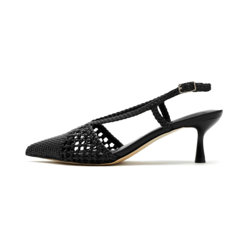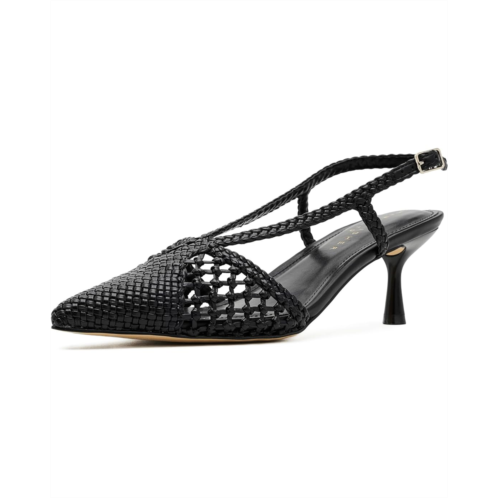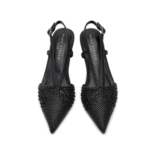 - The pinnacle of polished Marc Fisher LTD Reagan. Designed with a sleek PU upper and intricate woven detailing, this silhouette instantly elevates everything from tailored trousers to flowy dresses. The adjustable buckle strap closure offers a secure, customized fit, while the graceful kitten heel adds just the right amount of lift, comfortable, refined, and endlessly wearable. A lightweight EVA outsole ensures cushioned support and flexible movement, making long days feel beautifully manageable. The tapered heel enhances its feminine profile, delivering polish without sacrificing comfort.
