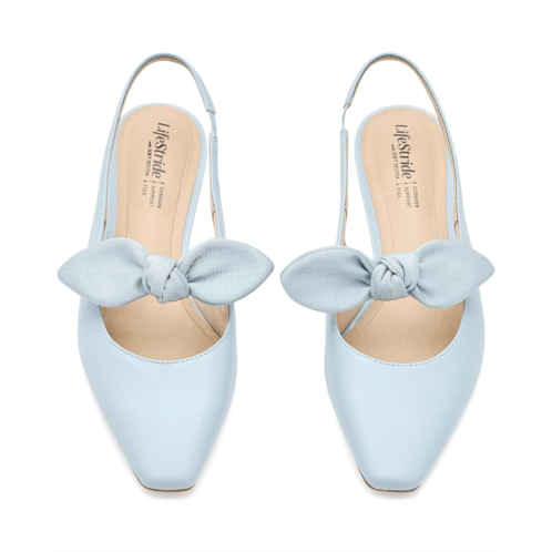- The LifeStride Lucia Slingback Shoes prove that true confidence comes from a perfect blend of polished aesthetics and cushioned ease. Designed to elevate your workwear wardrobe, these chic kitten heel pumps feature a sleek polyester upper with a smooth, refined finish and a feminine bow detail that adds just the right touch of charm. The elegant almond toe silhouette flatters every step, while the adjustable slingback buckle closure ensures a secure, customized fit. Inside, faux leather lining feels soft against the skin, and the Ethylene Vinyl Acetate insole powered by trusted Soft System comfort technology delivers superior cushioning, support, and flexibility from morning meetings to evening plans. A sturdy block heel offers graceful lift without sacrificing stability, and the synthetic rubber outsole with traction sole keeps you confidently grounded.