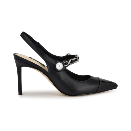 - Chic and stylish, the Nine West slingbacks are the perfect wardrobe staple. It features a high stiletto heel, pointy toe design, and chain detailing on the upper. They are designed with faux leather upper and lining with padded insole, the heels are sure to turn heads.